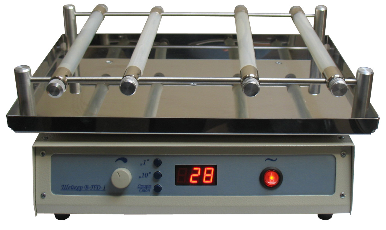 Перемішувальний пристрій шейкер В-ПД-1 призначений для перемішування рідин одночасно в декількох судинах об'ємом від 50 до 2000 мл.