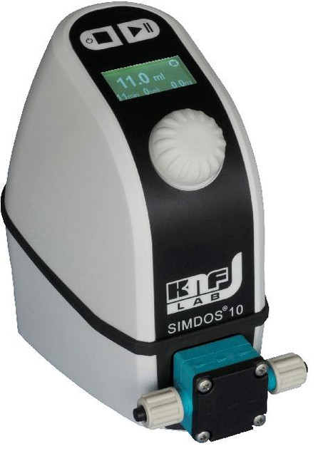 Дозувальний мембранний насос SIMDOS (KNF, Німеччина) компактний, зручний і простий у керуванні. Насос має цифровий дисплей, на якому зображаються параметри процесу. Вибір функцій та програмування здійснюється за допомогою великої обертової ручки.